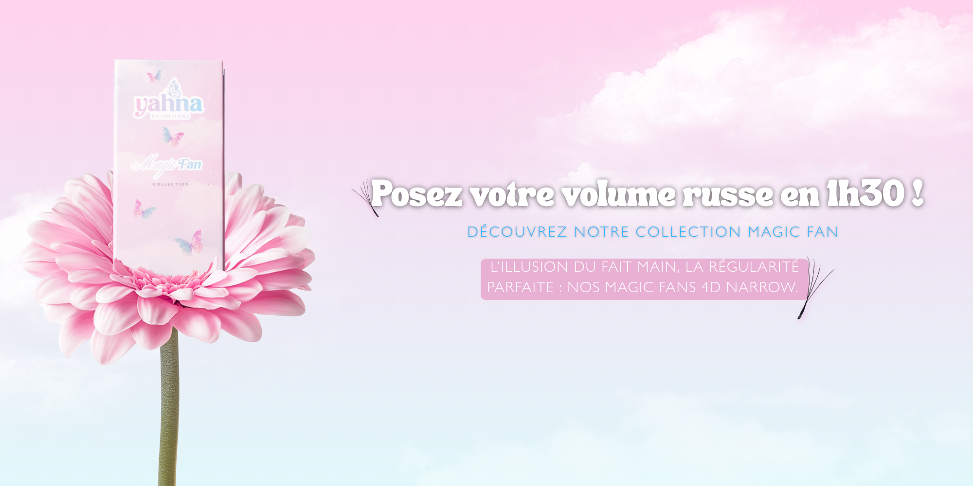 Plongez dans l’univers enchanté de YAHNA, où chaque création est pensée pour magnifier toutes les techniques et révéler la magie de chaque regard. De notre colle iconique Butterfly Bond à nos extensions d’exception, chaque produit est un sortilège alliant performance et élégance.